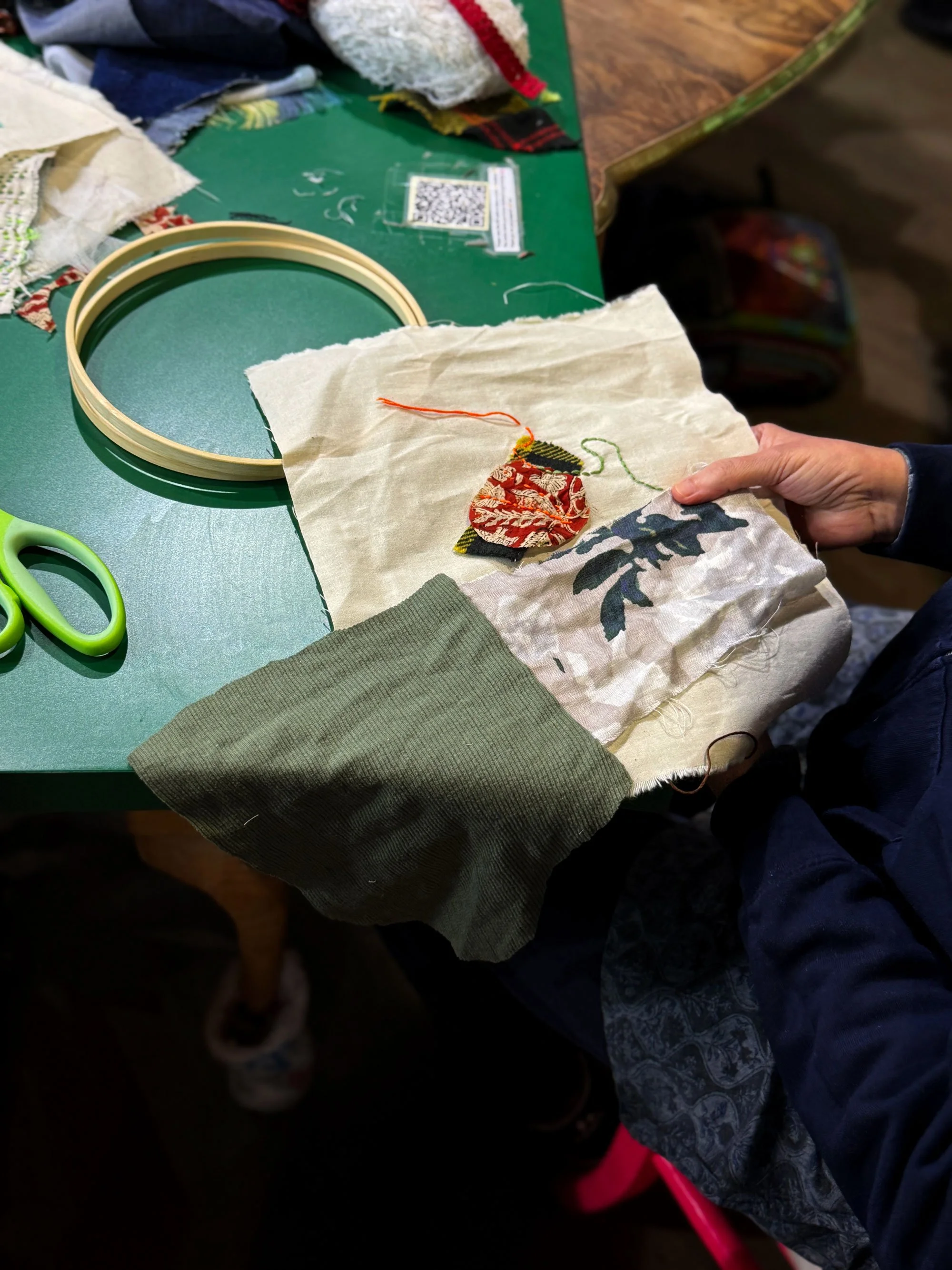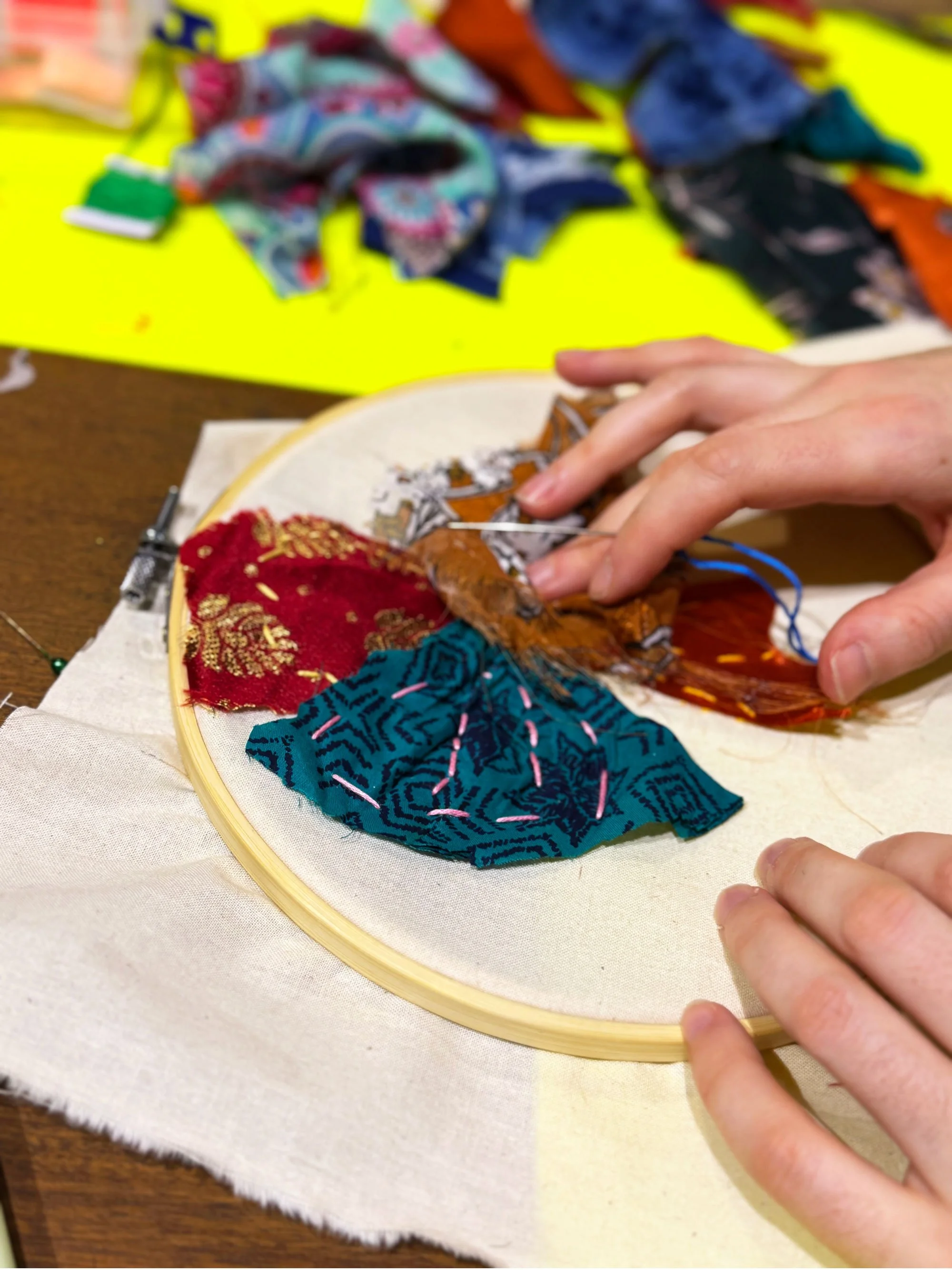 This participatory workshop invited participants to explore personal narratives through textile-based making, using stitching, collage and reclaimed materials. Emphasising creative play and accessibility, the session encouraged open-ended exploration without pressure toward a final outcome.